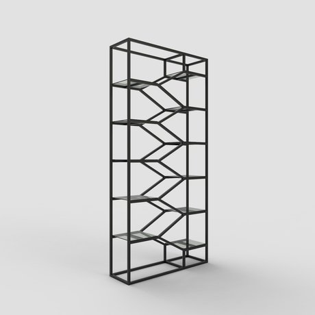 Стильный металлический стеллаж Aurora с геометрическим дизайном от студии мебели Decor Pronto. Добавляет динамики и сложности пространству, подходит для зонирования помещений. Этот стеллаж станет прекрасным интерьерным акцентом в пространстве. Выполнен из крепкого металлического профиля 20х20х2 мм. Изделие покрыто порошковой краской, которая наносится методом запекания, имеет высокие показатели стойкости к истиранию, повреждениям, выцветанию и прослужит долгие годы. Полки выполнены из зеркального полотна.