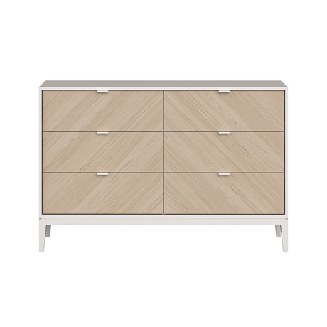 - Уникальный дизайн — фасады из шпона дуба с рисунком «елочка» создают фактурную поверхность, которая выглядит дороже своей цены - Практичная конструкция — шесть просторных ящиков с бесшумными направляющими и доводчиками закрываются плавно и тихо - Универсальность — подходит для спальни, гостиной и прихожей благодаря нейтральной цветовой гаммеКуда поставить:
