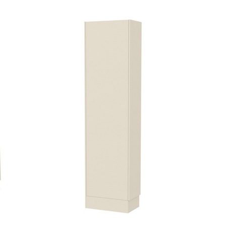 Отсутствие ручки и маленькая глубина делают его минималистичным. Сразу и не скажешь, что это еще один шкаф. Внутри есть место для гладильной доски. Открывание фасада “нажал-открыл”. Матовая поверхность корпуса приятная на ощупь и легкая в уходе. Обязательно крепление к другому шкафу или стене.