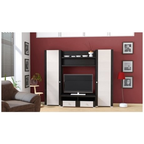 Уютная гостиная с набором самой необходимой современной мебели в приятной цветовой гамме: каркас выполнен в благородном темном оттенке венге цаво, а фасад имеет два оттенка - дуб белфорт и комби. В состав набора входит: шкаф низкий - 2 шт., тумба малая - 1 шт., полка малая - 2 шт.
