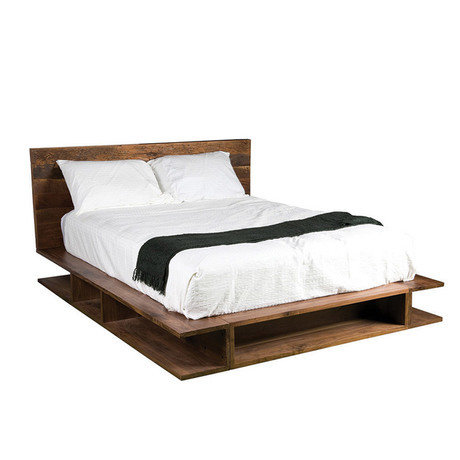 Кровать-платформа Bonnie выполнена в японском стиле. Современный дизайн воплощен с помощью старинного материала. Кровать королевских размеров и изготовлена вручную из массива грецкого ореха. Роскошная фактура антикварной древесины перобы, просуществовавшей большую часть своей «жизни» в виде телефонных столбов, отчетливо видна на широких гладких досках изголовья. Внизу, под основанием, расположены ниши-полки для хранения книг и журналов. Благодаря этому дизайнерскому решению кровать словно парит над полом. 100% ресайлинг. Отделка натуральным воском.