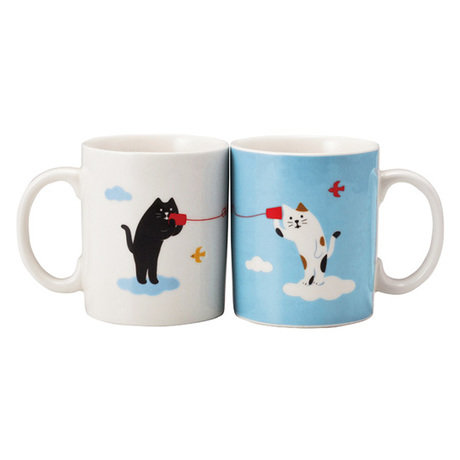 В чём плюсы: В комплект входят две чашки. Объём каждой чашки 250 мл. На чашках парные принты с кошечками, которые переговариваются при помощи двух стаканов, скреплённых ниткой. Милый и забавный подарок для хороших друзей или пары. Можно мыть в посудомоечной машине и ставить в микроволновку.Размер (ВхШхГ): каждая кружка 11 х 7,7 х 7,7 см.Материал: керамика.