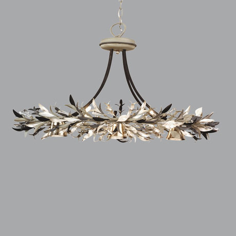 Подвесной светильник на металлической арматуре черного цвета. Украшен лепестками черного, белого, серебряного и золотого цвета с добавлением кристаллов Swarovski. Высоту светильника можно регулировать за счет звеньев цепи. Дизайн: Karen Lenz.