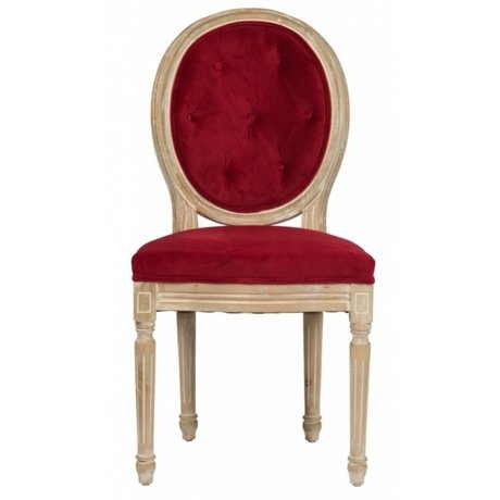Стул с основанием из натурального дерева, искусственно состаренного для придания эффекта винтажности, и обивкой из вельвета благородного темно-красного цвета будет гармонично смотреться в интерьере столовой. Поролоновый наполнитель делает изделие максимально мягким и удобным.